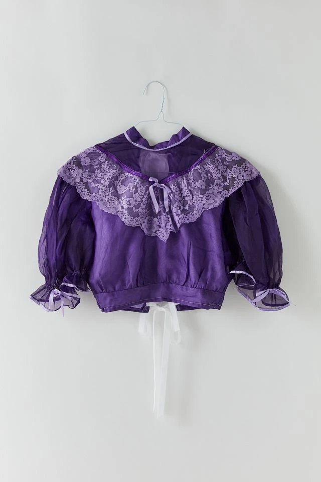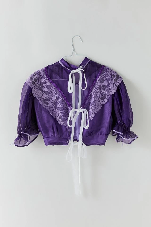 One-of-a-kind bodice top, hand-crafted from a vintage gown by For Good Luck. Creating pieces to help you celebrate life, For Good Luck is in the business of reviving love stories. Reinvented from vintage gowns, their bodice tops are hand-crafted and subvert the idea of one-time-use we associate with prom and wedding dresses.
