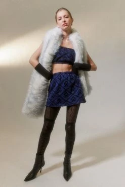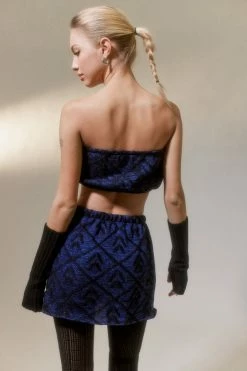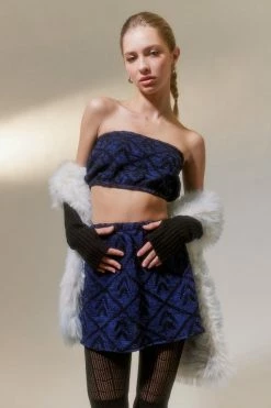 Knit skirt & tube top set from the parties collection by Urban Renewal. Features an allover pattern. Elastic trim tube top paired with a pull-on mini skirt. Remade in Los Angeles and created by Urban Renewal using unique vintage and deadstock items found around the world. Though similar in style to what you see here, each upcycled item is one-of-a-kind and may vary from piece to piece.
