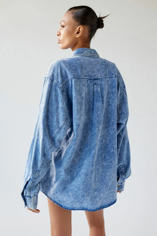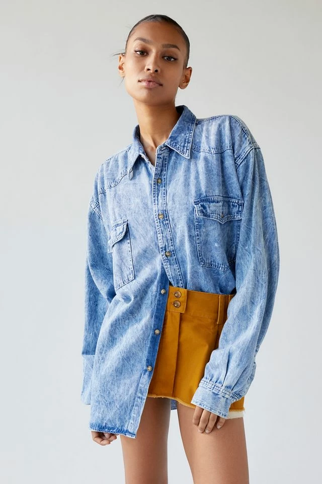 Vintage chambray shirt sourced by Urban Renewal and updated with an acid wash effect. This modern design was created by Urban Renewal from unique vintage and deadstock items found around the world. Though similar in style to what you see here, each upcycled item is one-of-a-kind and may vary from piece to piece.