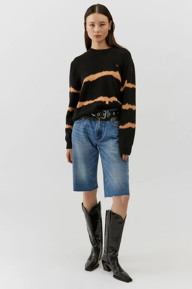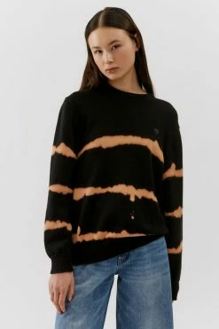 Vintage crew neck sweater by Urban Renewal updated with bleached stripe detailing. This new-to-you sweater was created by Urban Renewal from unique vintage and deadstock items found around the world. Though similar in style to what you see here, each upcycled item is one-of-a-kind and may vary from piece to piece.