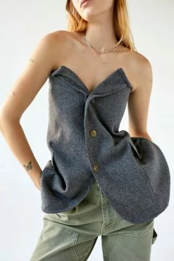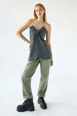 Bustier top by Urban Renewal crafted from an upcycled blazer jacket. Button front style with a unique look. Made new top created by Urban Renewal from unique vintage and deadstock items found around the world. Though similar in style to what you see here, each upcycled item is one-of-a-kind and may vary from piece to piece.
