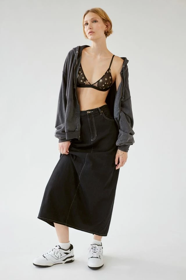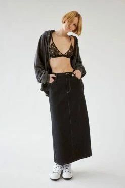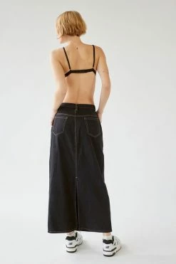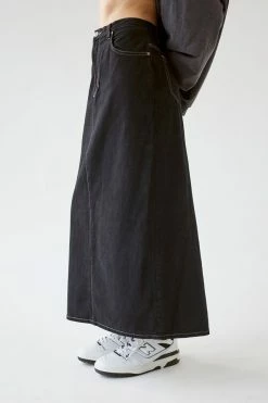 Denim maxi skirt by Urban Renewal. Updated look with an overdyed wash effect. Made new top skirt created by Urban Renewal from unique vintage and deadstock items found around the world. Though similar in style to what you see here, each upcycled item is one-of-a-kind and may vary from piece to piece.