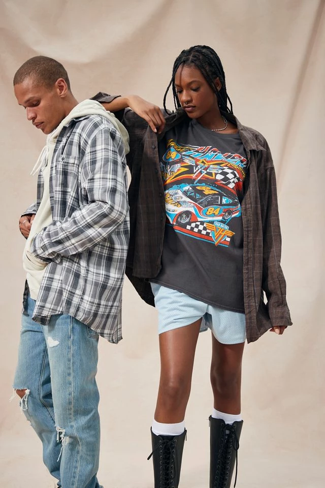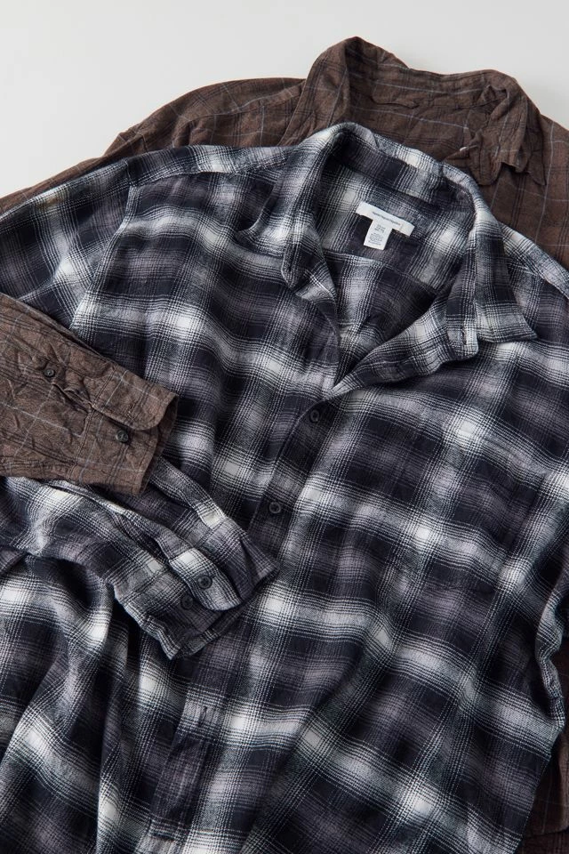 Vintage flannel shirt sourced by Urban Renewal and brought to you in its original form. Allover check pattern shirt with a button-down front and tab collar. This modern design was created by Urban Renewal from unique vintage and deadstock items found around the world. Though similar in style to what you see here, each upcycled item is one-of-a-kind and may vary from piece to piece.