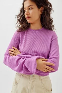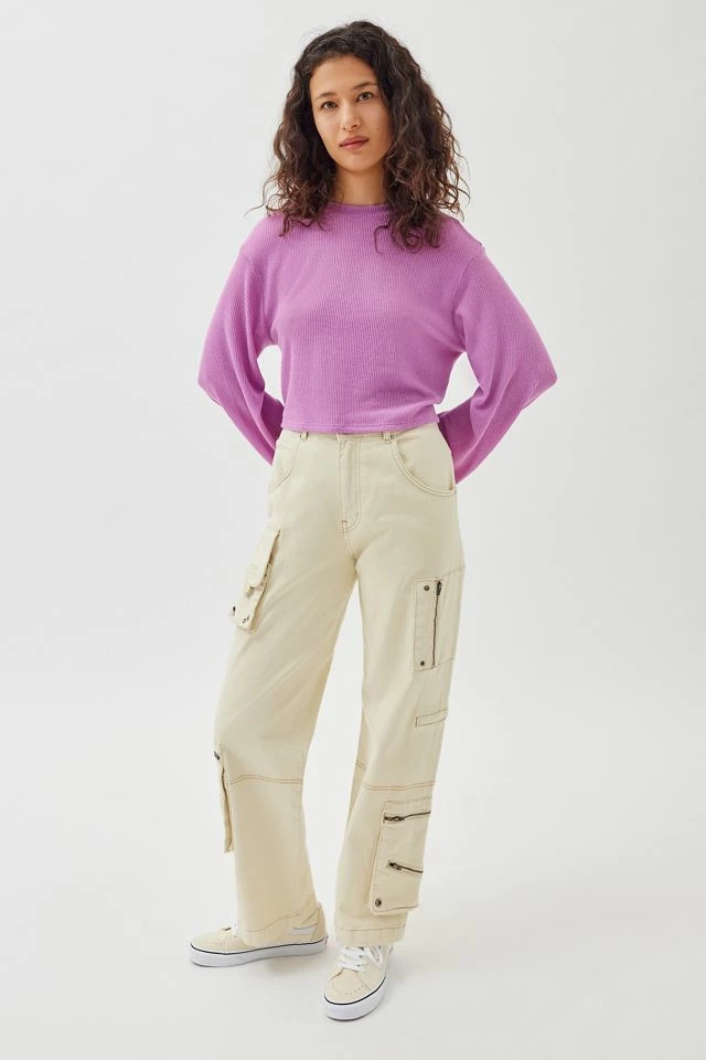 Ribbed knit pullover sweatshirt by Urban Renewal. Features a relaxed and drippy silhouette with longline sleeves and a cropped hem. Created from deadstock or discarded fabrics that would have gone unused, this brand-new top was made in the USA by Urban Renewal.