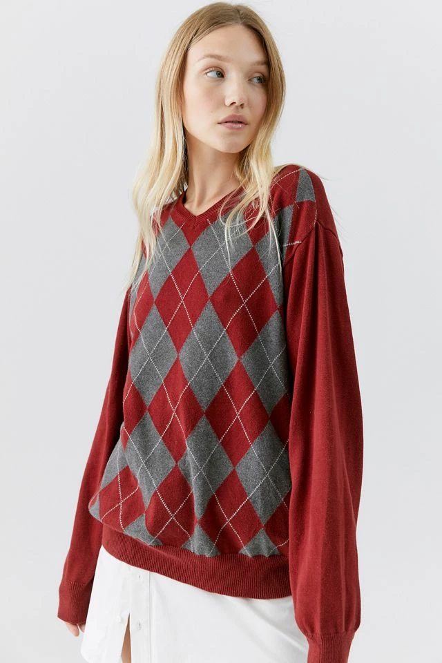 Argyle pattern sweater in its original vintage form. Pullover style with ribbed knit trims. The Urban Renewal team sourced the best of this vintage style from around the world. We’ll pick one just for you from our limited supply of one-of-a-kind designs. Each piece is unique and the one you receive will vary from what you see here.