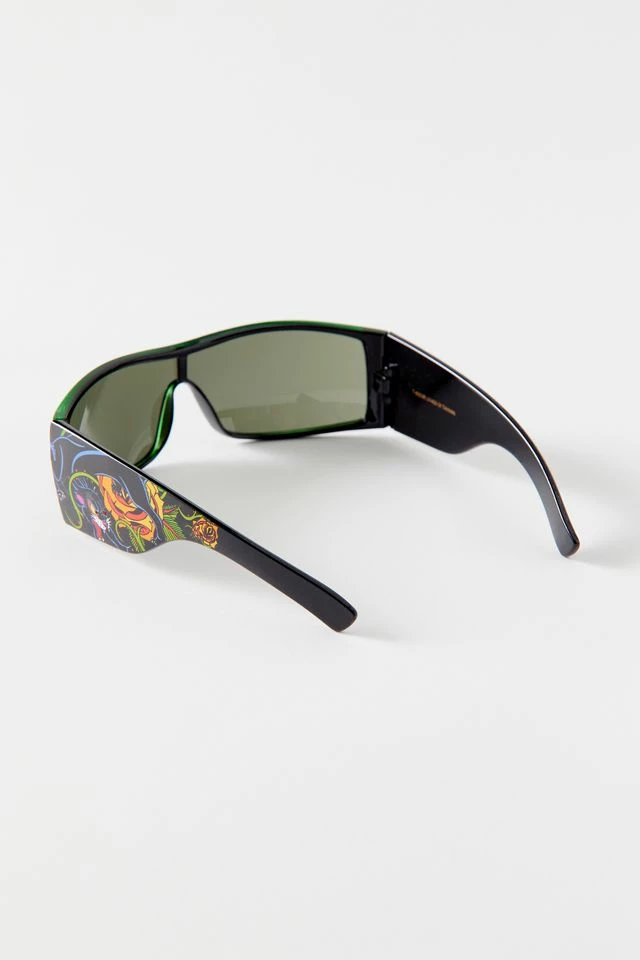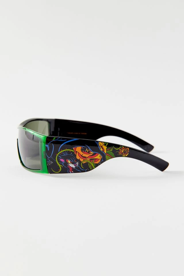Retro ‘90s sunglasses sourced by Urban Renewal and brought to you in their original form. Rectangle silhouette topped with panther motifs. The Urban Renewal team sourced the best of this vintage style from around the world. We’ll pick one just for you from our limited supply of one-of-a-kind designs. Each piece is unique and the one you receive will vary from what you see here.