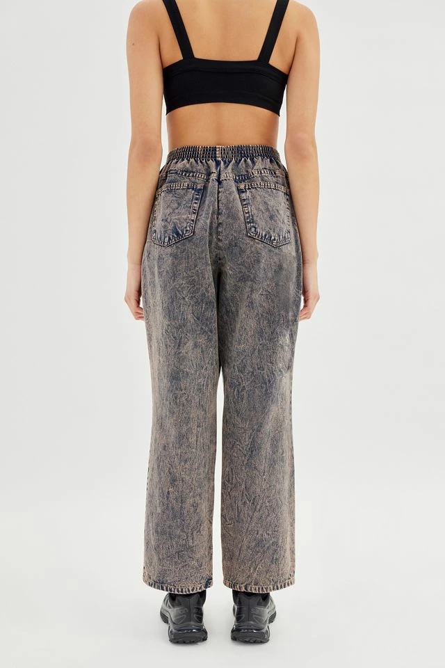 Upcycled pants by Urban Renewal with an acid wash overdye effect. Easy pull-on style with an elastic waistband. This modern pant was created by Urban Renewal from unique vintage and deadstock items found around the world. Though similar in style to what you see here, each upcycled item is one-of-a-kind and may vary from piece to piece.