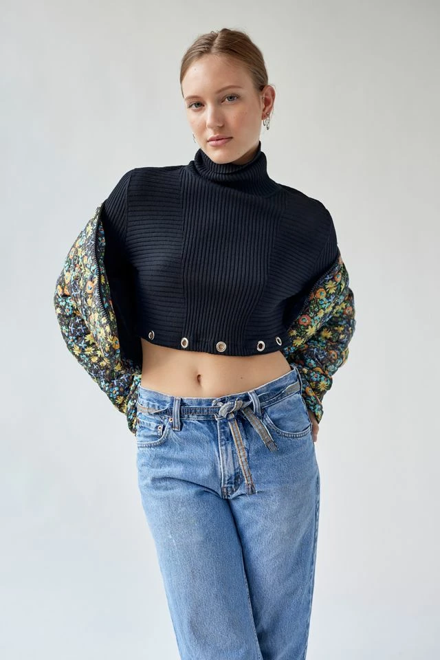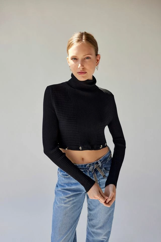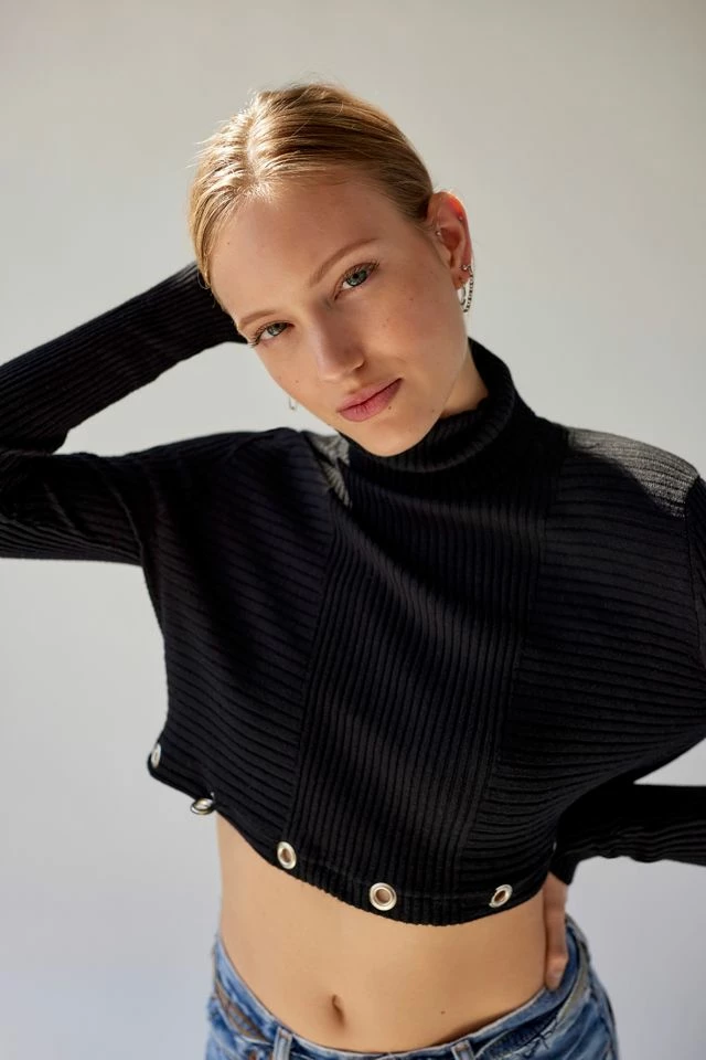 Turtleneck top in a cropped fit with grommet detailing at the hem. Urban Renewal New-to-you top created by Urban Renewal from unique vintage and deadstock items found around the world. Though similar in style to what you see here, each upcycled item is one-of-a-kind and may vary from piece to piece.