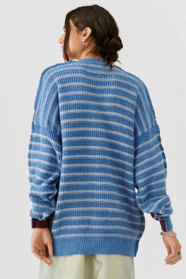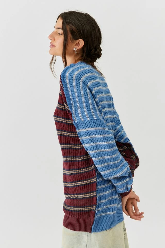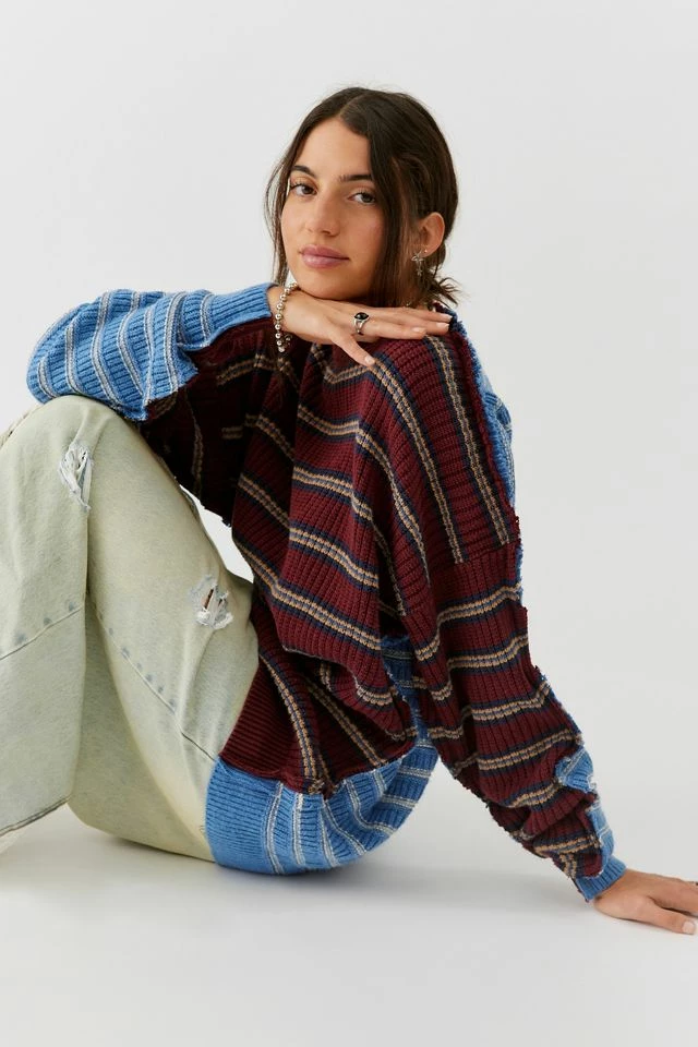 Vintage sweater updated with a cut & sew spliced look for a one-of-a-kind look. This modern design was created by Urban Renewal from unique vintage and deadstock items found around the world. Though similar in style to what you see here, each upcycled item is unique and will vary from piece to piece.