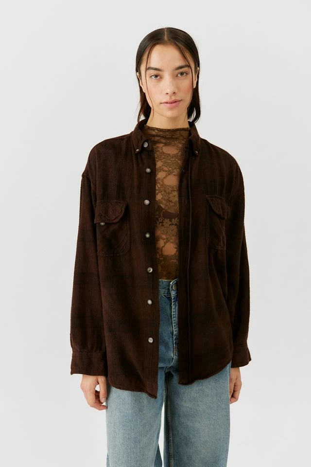 Cotton flannel checked shirt sourced by Urban Renewal and updated with an overdyed wash. This modern top was created by Urban Renewal from unique vintage and deadstock items found around the world. Though similar in style to what you see here, each upcycled item is one-of-a-kind and may vary from piece to piece.