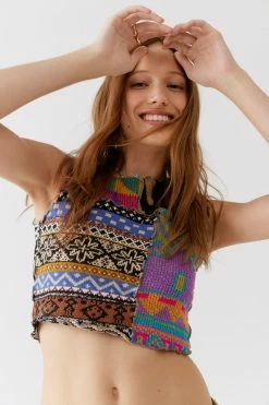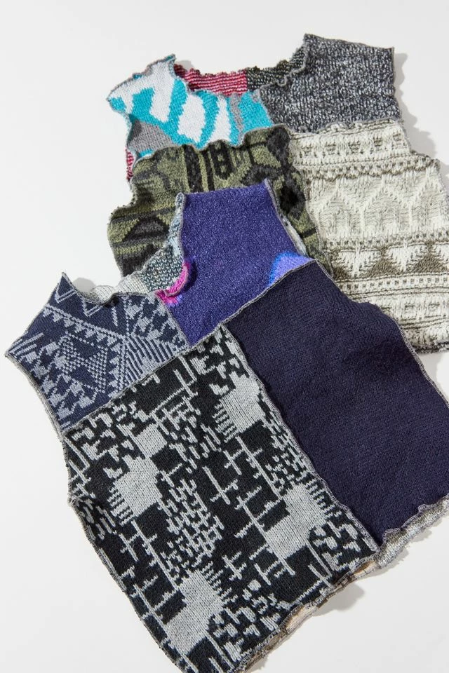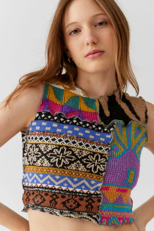 Top by Urban Renewal crafted using upcycled sweaters. Features a patchwork look. Sleeveless style with a cropped hem. This new-to-you sweater top was created by Urban Renewal from unique vintage and deadstock items found around the world. Though similar in style to what you see here, each upcycled item is one-of-a-kind and may vary from piece to piece.