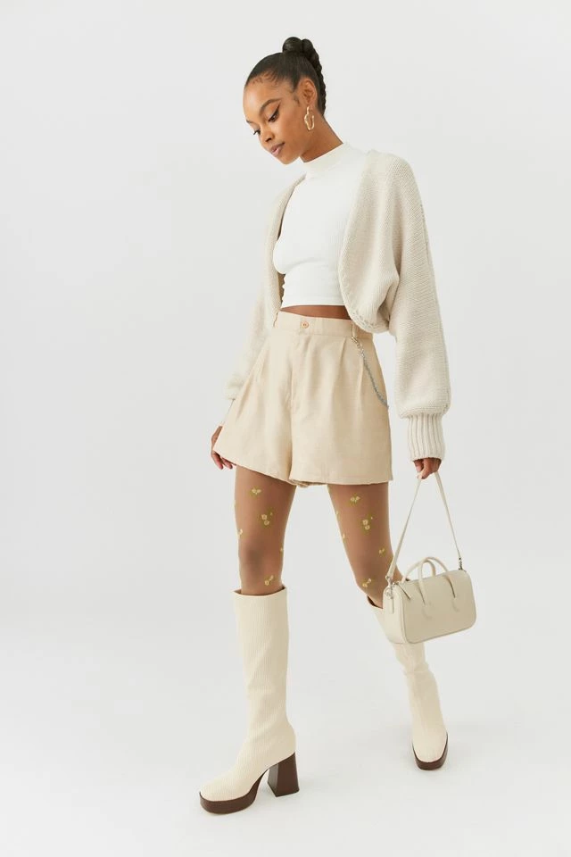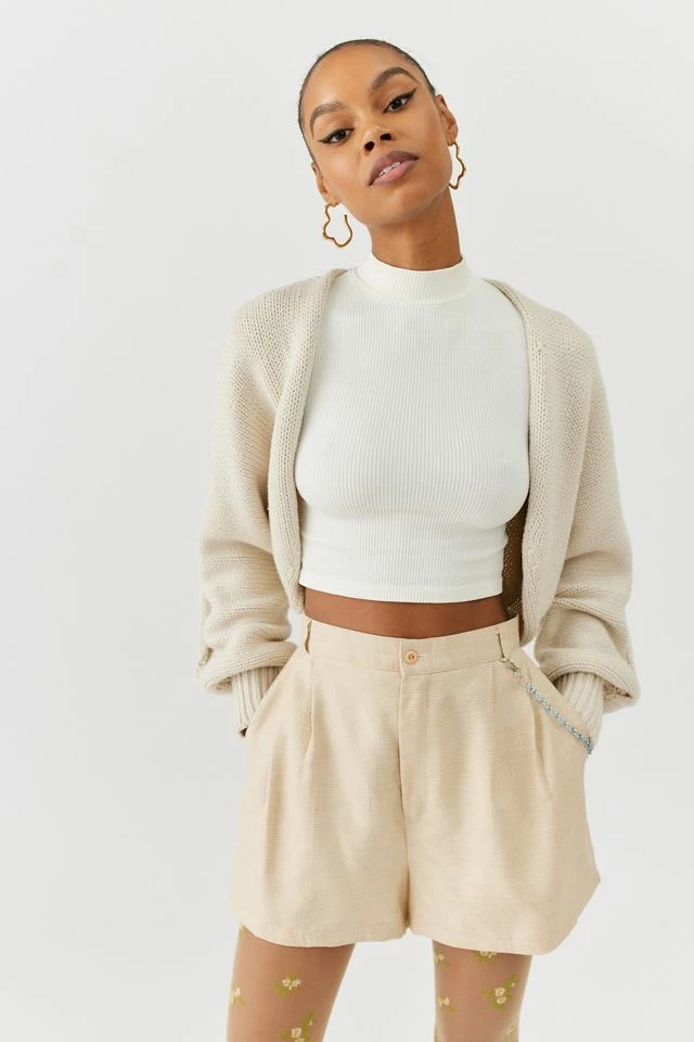 Updated shorts by Urban Renewal adorned with a chain accent at the side. Modern design short created by Urban Renewal from unique vintage and deadstock items found around the world. Though similar in style to what you see here, each upcycled item is one-of-a-kind and may vary from piece to piece.