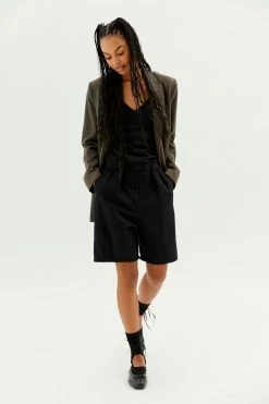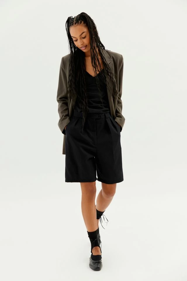 Tailored look suiting shorts crafted using vintage pants by Urban Renewal. This modern design was created by Urban Renewal from unique vintage and deadstock items found around the world. Though similar in style to what you see here, each upcycled item is one-of-a-kind and may vary from piece to piece.