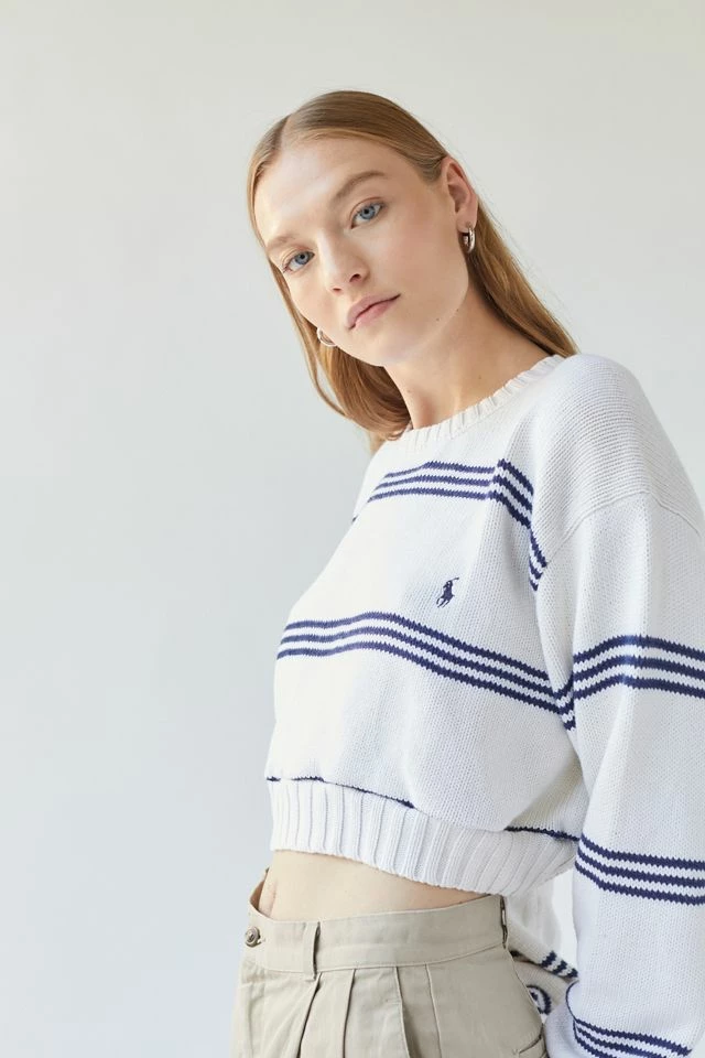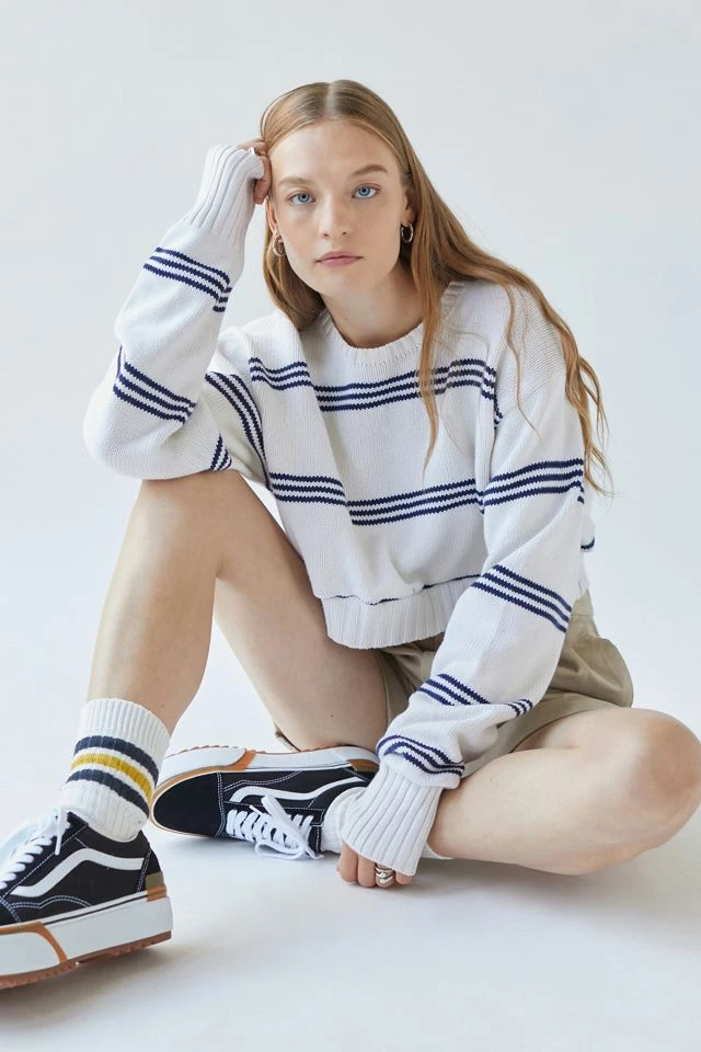 Cropped sweater by Urban Renewal in its original vintage form. Topped with an allover striped pattern. Made new sweater created by Urban Renewal from unique vintage and deadstock items found around the world. Though similar in style to what you see here, each upcycled item is one-of-a-kind and may vary from piece to piece.