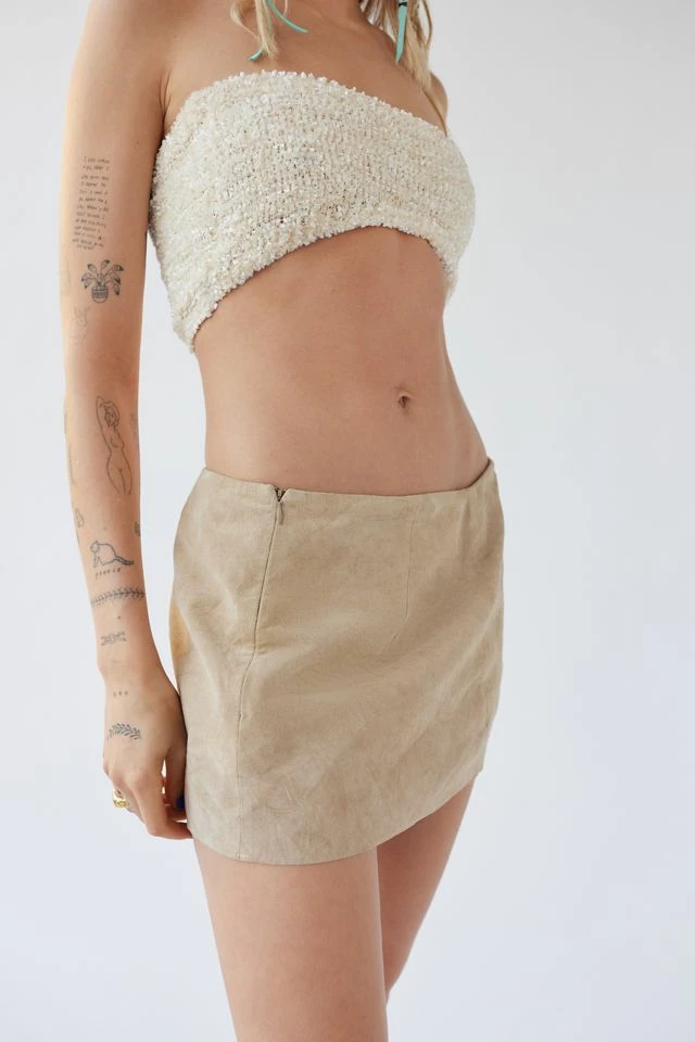 Vintage suede skirt made new by Urban Renewal. Low-rise style in a micro mini length. This modern design was created by Urban Renewal from unique vintage and deadstock items found around the world. Though similar in style to what you see here, each upcycled item is one-of-a-kind and may vary from piece to piece.