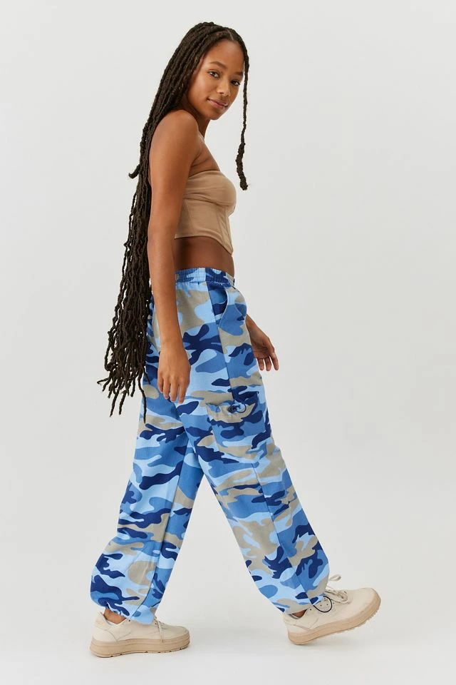 Wind pants by Urban Renewal with an allover camo pattern. Relaxed style topped with utility pockets. Created from deadstock or discarded fabrics that would have gone unused, these brand-new pants were made in the USA by Urban Renewal.