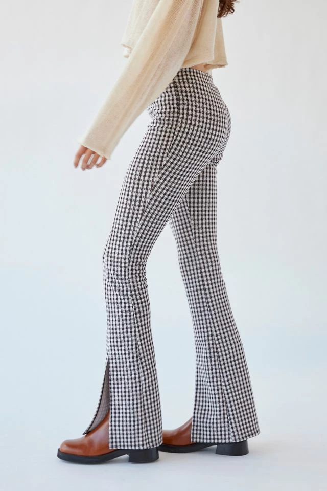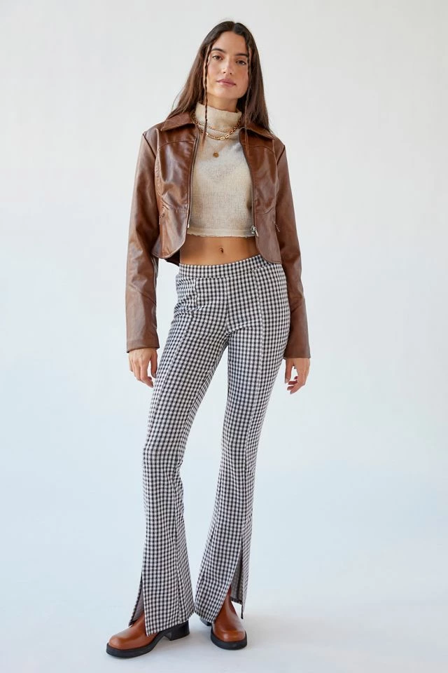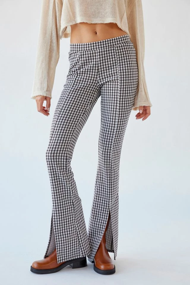 Low-rise pants by Urban Renewal with an allover houndstooth pattern. Features seamed detailing at the front and slits at the ankles. Created from deadstock or discarded fabrics that would have gone unused, this brand-new top was made in the USA by Urban Renewal.
