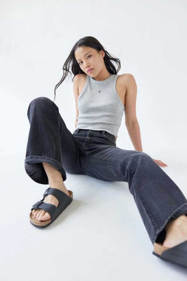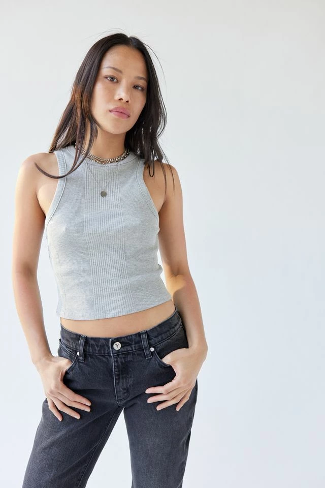 Ribbed knit tank top crafted by Urban Renewal using remnant fabric. Sleeveless style in a fitted silhouette with a high neckline and cropped hem. Created from deadstock or discarded fabrics that would have gone unused, this brand-new design was made in the USA by Urban Renewal.
