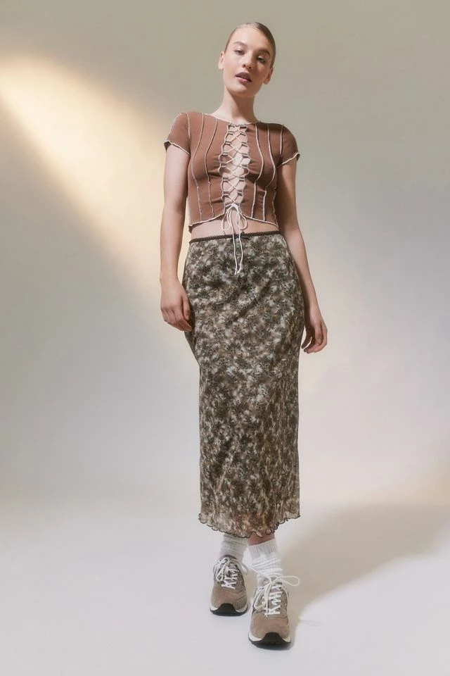 Upcycled remnants midi skirt by Urban Renewal. Features an allover print and a classic ‘00s style. Cut in a midi length with a high-rise waist. Created from deadstock or discarded fabrics that would have gone unused, this brand-new skirt was made in the USA by Urban Renewal.